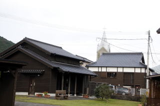 | 明治の趣を感じる港、ライトアップされて、綺麗でした。この日は、ここだけ見て今宵の宿「天草ホテル亀屋」へ・・・・ | 次の日「崎津教会」 天草のキリシタンの中心地ともいえる畳敷きの教会。 |