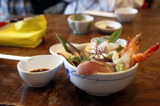 | 27日のお昼、てんこ盛り「海鮮丼」 美味しかったです。 |