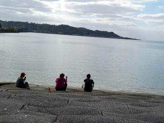 | 13日、余りに良い天気なので、ホテルの方が、海に行った方が良いと言うので、急遽予定変更。海中道路に行きました。運転手さんが、眠いと言うので、コンビニで駐車して寝かせてあげましたが、暑いと言って、車を移動させたから、私達は大あわて,車が無くなっていて心配しました。 何遍も電話してやっと会えたのでした。 |