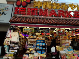 | 夕食を食べに、国際通りに行きました。ステーキが安くて美味しかったです。 | こんなお土産屋が沢山並んでいて、まるで外国に来たみたい。早速一日目にお土産を沢山買いました。面白かった! | ここは、お世話になった、サザンビーチホテル。 南の位置にあり、静かで良いホテルでしたが、 駐車場の案内が不味く、主人が怒っていました。朝のバイキングでお汁粉を毎回食べました。 |