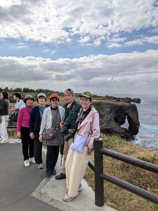 万座毛で、5人の集合写真。 運転ご苦労様でした。いつもは、私が計画を立てるのですが、今回は、5回も沖縄を訪れているお友達が頑張ってくれたので、助かりました。 車を返して、20時45分の飛行機で無事に東京に帰ってきました。お疲れ様でした。 |