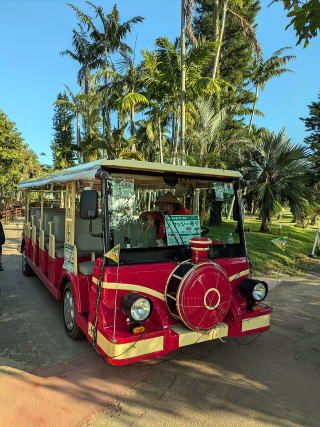 この日最後は、「東南植物園」 500円出して、このバスで園内をゆっくり回って、 色々な植物や、動物に出会って、超楽しかったです。本当なら、19時頃から、素晴らしいライトアップが行われていたのですが、ここからホテルまで、1時間30分位かかるので、諦めました。ホテルの近くで、ライトアップがあるそうなので、そちらに行く事にしました。大したことありませんでした。残念! |