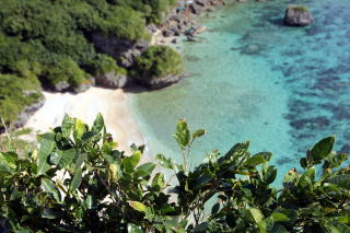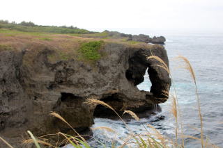 「果報バンダ」海の色が何色にも違っているのには、驚きました。 この後、高速で「万座毛」に行くのですが、お腹が空いていないので、コンビニのお握りで済ませました。前の日の沖縄ソバに比べたら、とても、美味しかったです。 |
